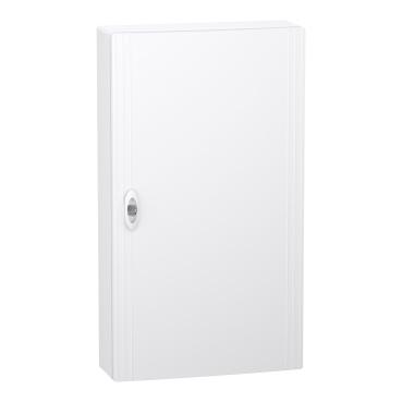 El envolvente modular PrismaSeT XS es una caja de distribución diseñada para instalaciones en superficie en interiores, ofreciendo 4 filas de 18 módulos de 18 mm cada una. Con una estructura en plástico de alta resistencia, esta caja ofrece protección IP40 con puerta cerrada y cuenta con una puerta lisa en color blanco (RAL 9003). Es compatible con todo tipo de aparamenta modular, proporcionando una solución práctica y ergonómica para electricistas, asegurando una instalación sencilla, flexible y lista para su uso inmediato. Incluye una placa trasera, 4 carriles DIN desmontables para facilitar el cableado, un bloque de terminales de tierra con 38 salidas y accesorios como etiqueta de identificación, protector de etiqueta y tapa ciega en tira. La caja está diseñada para soportar una tensión nominal de 400V, una corriente de hasta 125A, y temperaturas de funcionamiento entre -25 °C y 60 °C, cumpliendo las normativas IEC correspondientes.