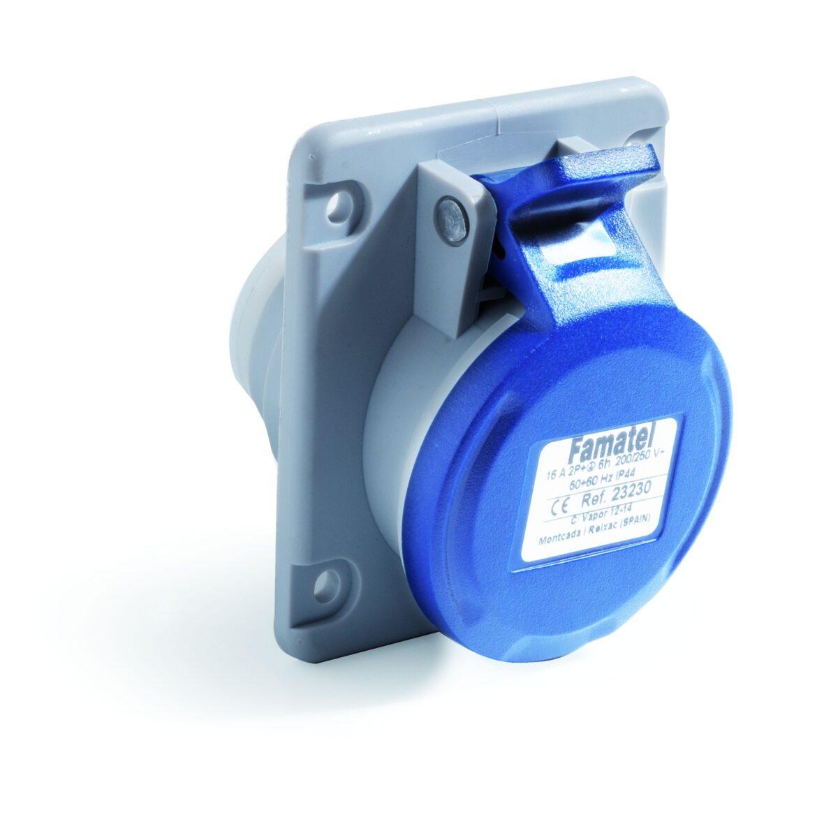 La Base empotrar Famatel Base empotrar 2P+T 16A IP54 con salida inclinada a 10º combina durabilidad y funcionalidad en una solución de conexión eléctrica profesional. Diseñada para instalaciones que requieren un nivel elevado de protección contra salpicaduras y contaminantes, esta base cuenta con terminales con tornillo, material en PA6/ABS resistentes y contactos niquelados, garantizando una conexión segura y duradera en diferentes entornos industriales y domésticos.