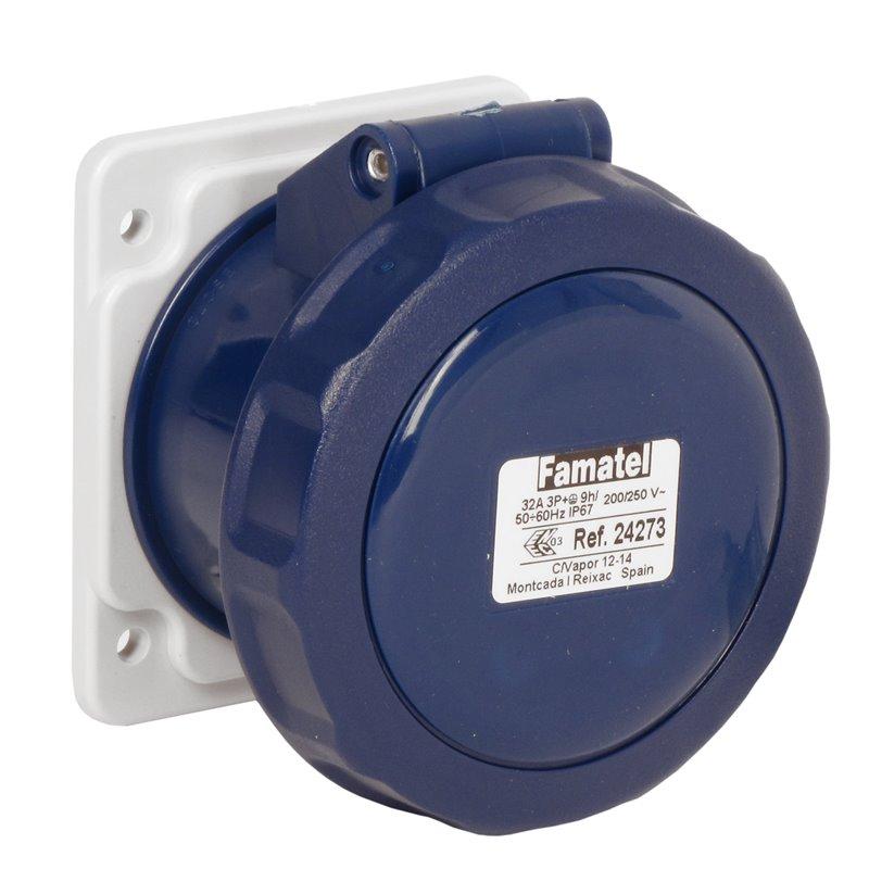 La Base empotrar salida recta 2P+T 16A 230V de Famatel, diseñada con terminales de tornillo y fabricada en material PA6/ABS, ofrece una solución robusta y resistente para conexiones eléctricas en entornos exigentes. Con contactos niquelados que garantizan una conductividad óptima y una protección de larga duración, esta base cuenta con una clasificación IP66-67, asegurando un rendimiento hermético y fiable incluso en condiciones de humedad o exposición a polvo.