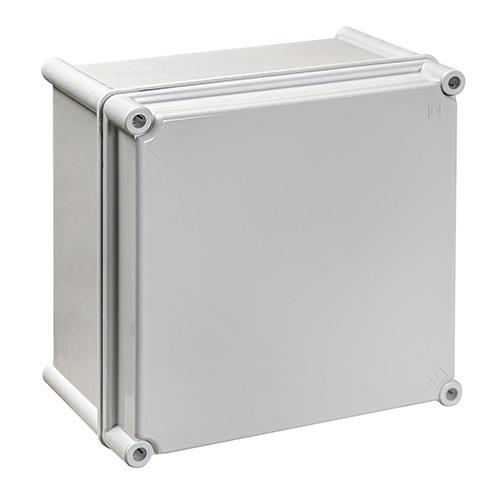 La caja doble aislamiento en poliéster con tapa opaca, referencia ROC66PO, es una solución robusta diseñada para ofrecer protección excelente en entornos exigentes. Con dimensiones exteriores de 540x540x171 mm, está diseñada para una fácil instalación en superficie. Cuenta con una tapa opaca de policarbonato, cierre mediante tornillos de accionamiento con destornillador y acabado de doble aislamiento clase II, que garantiza aislación eléctrica y protección mecánica de alta calidad. Construida en poliéster reforzado con fibra de vidrio y con junta de estanqueidad de poliuretano, esta caja es perfecta para aplicaciones donde la protección contra agua y polvo es indispensable, certificada con grado de protección IP66 y resistencia al impacto IK09. Su peso ligero de 5,2 kg y compatibilidad con diferentes sistemas la hacen una opción versátil y confiable en proyectos industriales y de domótica.